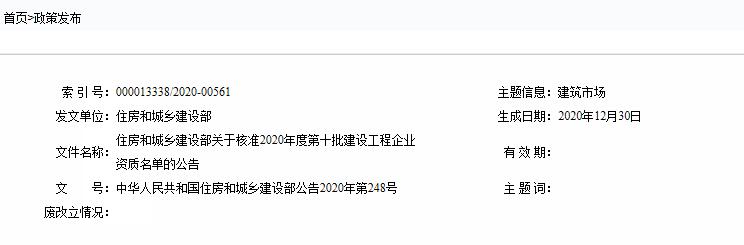 就在进入2021的前夕,住建部公布2020年度第十批建设工程企业资质核准名单,此次共有93加企业拿到了99项建筑业企业资质,6家升级特级成功。