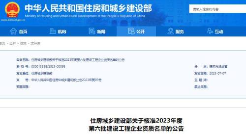 住房和城乡建设部发布了2023年度第六批建设工程企业资质名单的公告,其中本批次申报企业共有21家,其中,包含建筑施工、工程监理、设计资质等资质项。