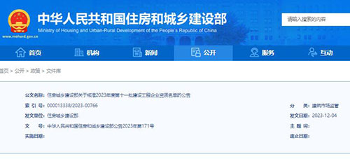 2023年度第十一批建设工程企业资质名单的公告
