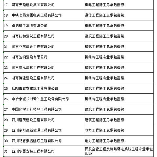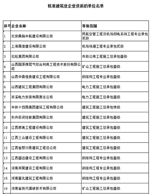 附:核准建企资质名单