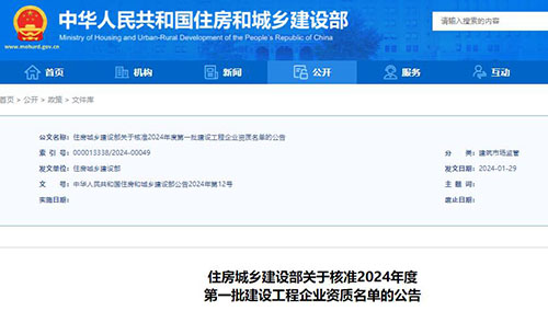 1月31日,住房城乡建设部发布关于核准2024年度第一批建设工程企业资质名单的公告。其中: