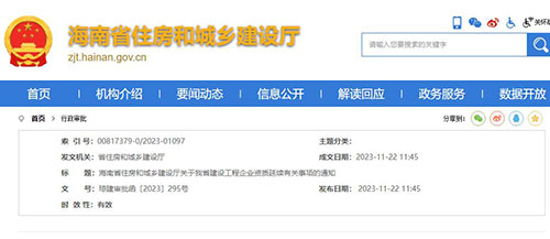 近日,海南省住建厅也发布了《关于建设工程企业资质延续有关事项的通知》,企业资质届满自动延续至2024年12月31日。