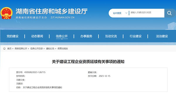 12月15日,湖南省住建厅发布关于建设工程企业资质延续有关事项的通知。具体内容如下: