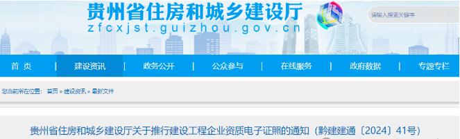 近日,贵州省住建厅发布关于推行建设工程企业资质电子证照的通知。